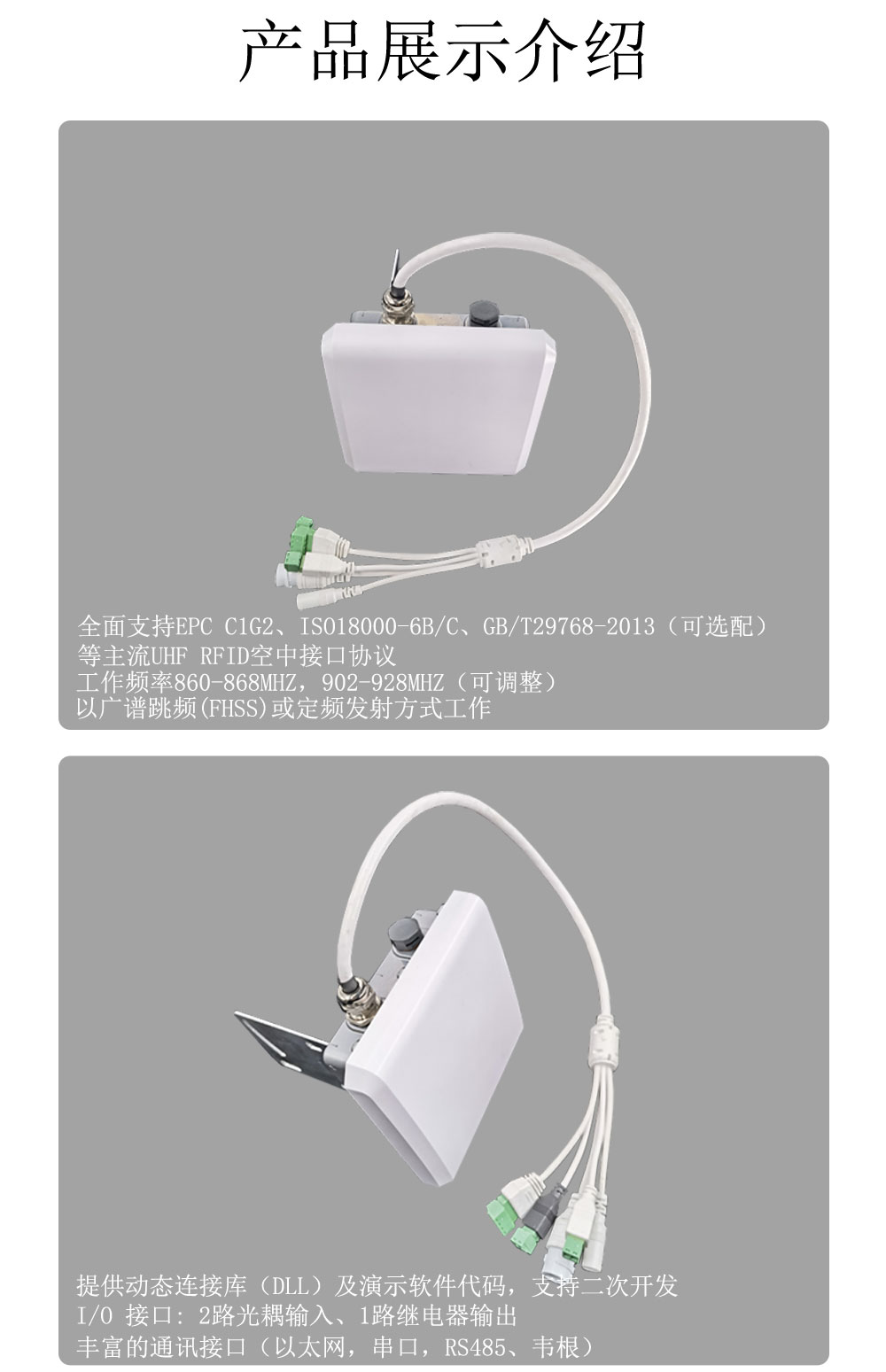 HX-R01B-6是一款高性能的UHF超高频电子标签一体机,完全自主知识产权设计,结合专有的高效信号处理算法,在保持高识读率的同时,实现对电子标签的快速读写处理,可广泛应用于物流、车辆管理、门禁系统、防伪系统及生产过程控制等多种无线射频识别(RFID)系统。